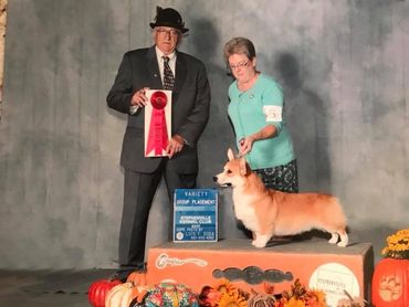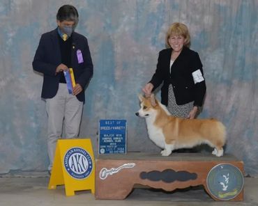 Overo Pembroke Welsh Corgis have produced 33 AKC Conformation Champions. Competing successfully in AKC Conformation shows is extremely important to our breeding program as this event is the evaluation of correct structure, movement, and temperament as stated by the Pembroke Welsh Corgi Club Of America (PWCCA) Breed Standard.